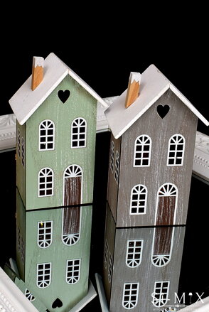 Drevený, zimný domček v zelenom prevedení s bielou strechou, LED dekorácia s teplým, bielym svetlom, na 2 kus LR03-1,5V, tento bytový doplnok so svetlom vám vytvorí príjemnú atmosféru počas celého roka, dobrý typ na darček, rozmer 20x10x8cm.