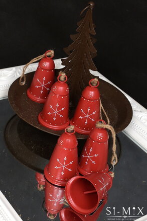 Rozkošný, červený, kovový zvonček s motívom snehovej vločky, krásne zvoní, na zavesenie aj ozdobenie stromčeka alebo venčeka, rozmer 13x8cm.