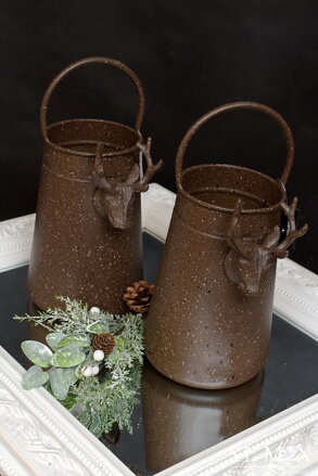 Elegantná kovová kanvica značky COUNTRYFIELD je vyrobená z kvalitného kovu, medeno-hnedom odtieni, s výrazným prvkom jelenej, plasticky vytvarovanej hlavy, pevné, kovové ucho zabezpečí pohodlné prenášanie, je ideálna ako dekorácia na chalupu, terasu do vidieckeho interiéru, ale aj ako darček, rozmer 36x16cm.